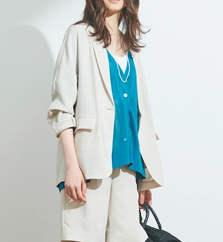 \夏にピッタリ!エアリーなノーカラージャケットも♡/