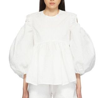 白と黒のコントラストで前面のシャーリングが目を引くコートはSimoneRocha(シモーネロシャ)!