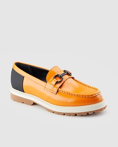 綺麗なオレンジカラーにかかと部分のブラックカラーがインパクトあるローファー♬