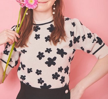 モノトーンのフラワープリントが可愛いハーフスリーブニット◎