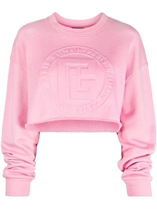 ショートスウェットシャツでフロントのロゴデザインがシャドーになっているのもおしゃれ!